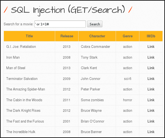 SQL Injection (Get/Search)