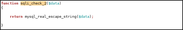 mysql_real_escap_string 함수를 사용하여 입력한 데이터를 우회한다. 사용자 입력 값에 SQL 문법에서 사용하는 특수 문자가 있을 경우 백슬래시를 붙여 입력 데이터를 SQL 문법으로 인식하지 않게 방어한다.