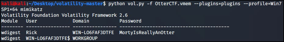 OtterCTF.vem 메모리 덤프 파일을 imageinfo 플러그인을 사용했다.