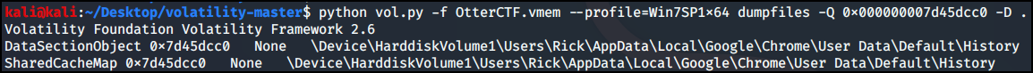filescan을 이용해 Chrome의 History 파일을 찾았다.