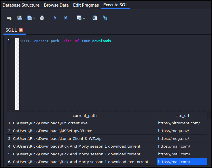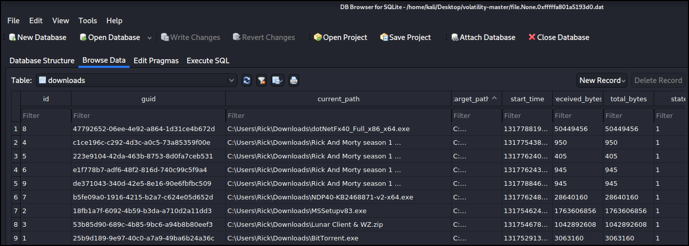 DB Browser for SQLite를 이용해서 DB 파일을 열어 보았다.