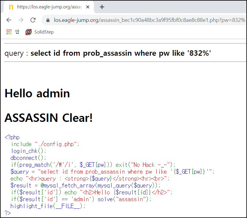0-9, a-z, A-Z까지 전부 해보았만 Hello guest밖에 뜨지 않아 guest와 같이 앞부분이 비밀번호가 같다는 것을 알 고 832% 입력 시 정답이라는 것을 알 수 있다.