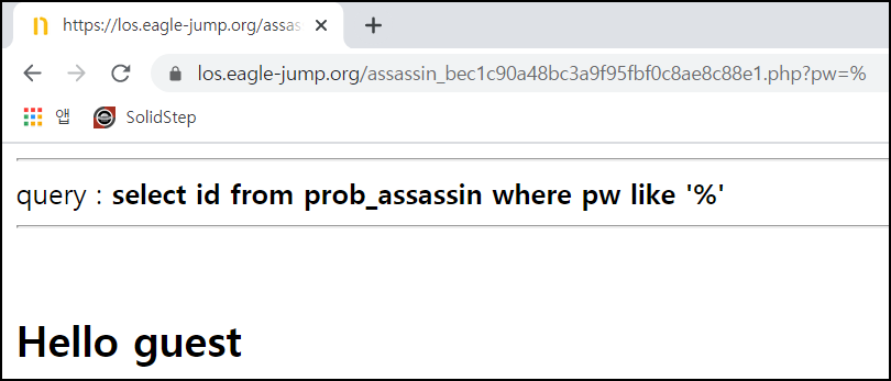 ?pw=% 입력 시 Hello guest 문자열이 출력되는 것을 알 수 있다.