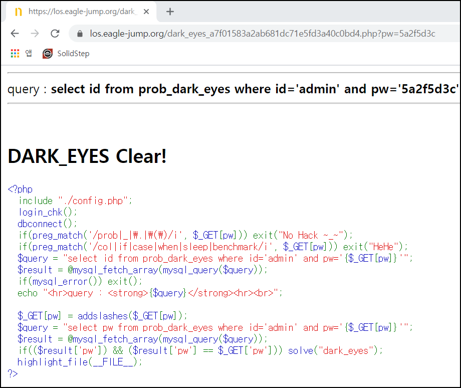 ?pw=5a2f5d3c 입력 시 해결되는 것을 알 수 있다.