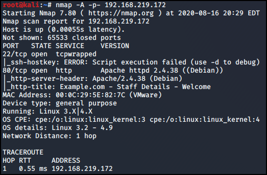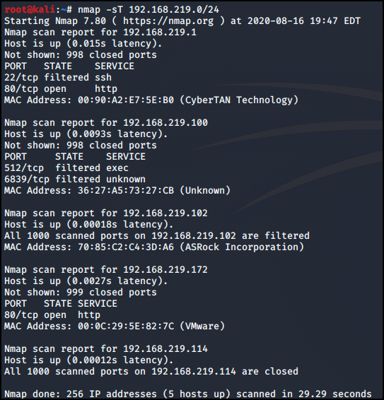 -A 옵션을 통해 192.168.219.172 Port를 자세히 확인했다.