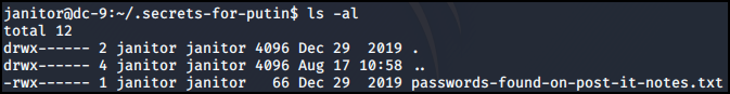 ls -al 명령어를 통해 숨겨진 secrets-for-putin 폴더를 확인할 수 있다.