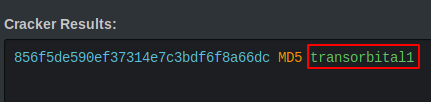 admin Password를 MD5로 복호화를 통해 transobital1 값을 알 수 있다.