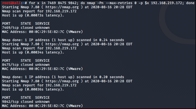 간단한 스크립트를 통해 7469, 8475, 9842 port 상태를 확인했다.