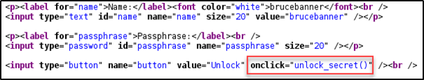 소스 코드에 passphrase와 secrect 변수의 값이 일치하는 경우 로그인 성공하는 것을 알 수 있다.