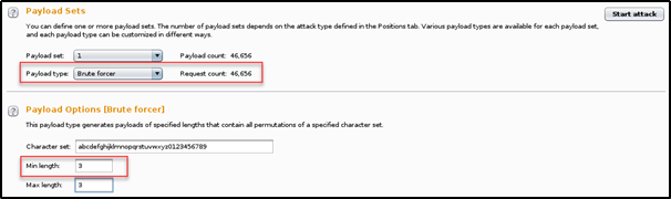 Brute forcer 공격하기 전에 패스워드 길이를 3으로 설정을 했다.