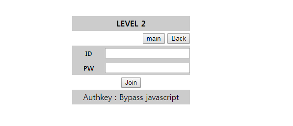 id/pw 값이 다르면 submit() 함수가 실행되는 것을 알 수 있다. 그런데 Hint를 보면 Join / id=pw 값이 같아야 한다는 것을 알 수 있다.