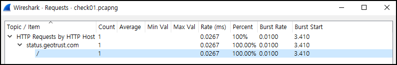 [Statistics] -> [Requests] 메뉴에 들어가도 별다른 정보를 알 수 없다.