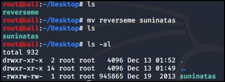파일의 이름을 reverseme에서 suninatas로 변경하였다.