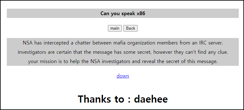 문제의 파일을 다운로드하면 아래와 같이 메시지를 확인할 수 있다.