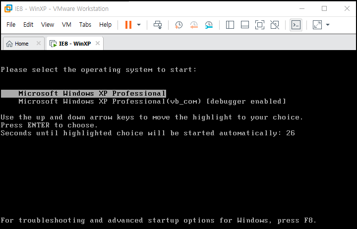 g를 입력 하면 VMware가 동작하는 것을 알 수 있다.