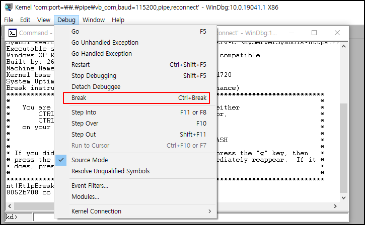 VMware 부팅 과정에서 Windbg Debug 옵션에서 Break를 해준다.