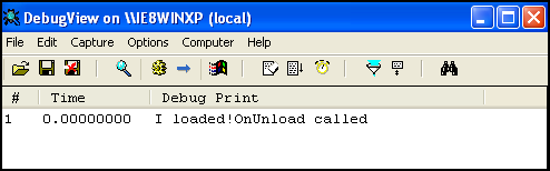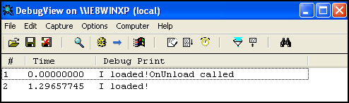 DebugView 프로그램을 통해 소스코드에서 본 "I loaded!" 메시지를 확인할 수 있다.