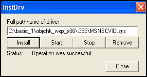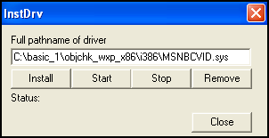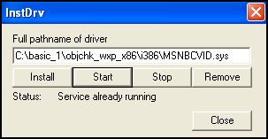 InstDrv 프로그램을 통해 MSNBCVID.sys 파일의 경로를 입력했다.