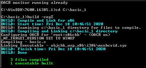 x86 Checked Build Environment 프로그램을 통해 basic.c 파일 위치에서 build -cegZ 빌드를 했다.