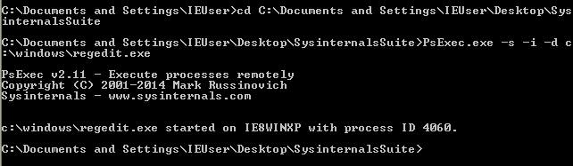 PsExec.exe 파일을 이용해 옵션을 주고 regedit 파일을 실행