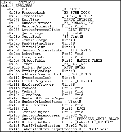 - Size는 XP일 경우 0x290, Windows 2000의 경우 0x208 Bytes