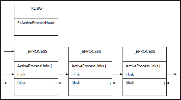 KDBG를 통해 _EPROCESS를 찾을 수 있다.