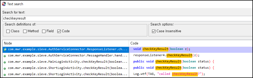 로그인의 성공과 실패 부분을 발견할 수 있다. checkKeyResult가 어디서 호출되는지 찾아보았다.