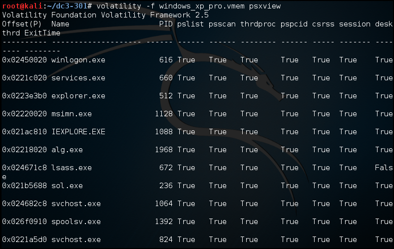 정답: msimn.exe(1128), IEXPLORE.EXE(1088), sol.exe(672), msmsgs.exe(1196)