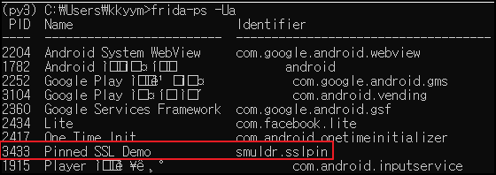 Pinned SSL Demo 프로세스를 확인했다.