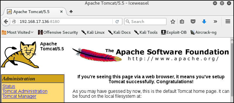 메타스플로잇을 실행시킨 후 8180 포트 Tomcat 관리자 페이지로 접속했다.