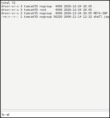 shell.jsp 페이지 접속하면 WebShell이 정상적으로 업로드 된 것을 알 수 있다.