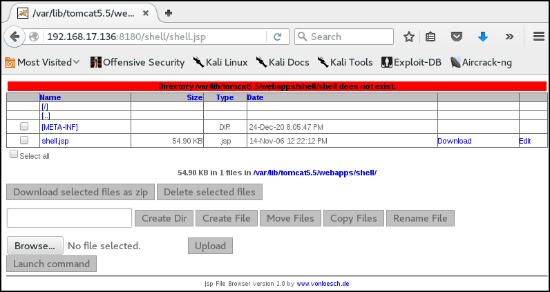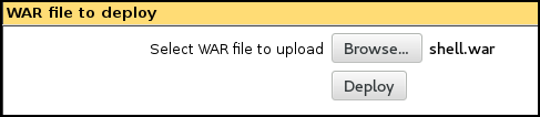 하단을 보면 업로드 메뉴가 있어 shell.war 파일을 업로드하였다.