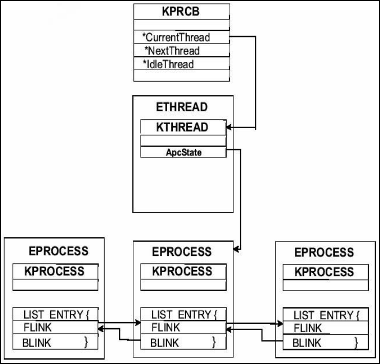 커널에서는 구조체를 오브젝트라 표현하는데 프로세스 숨기기의 경우, 프로세스의 정보를 가진 EPROCESS 구조체의 일부를 조작한다.