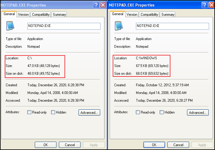 notepad.exe와 packing된 notepad.exe 크기를 보면 차이가 나는 것을 알 수 있다.