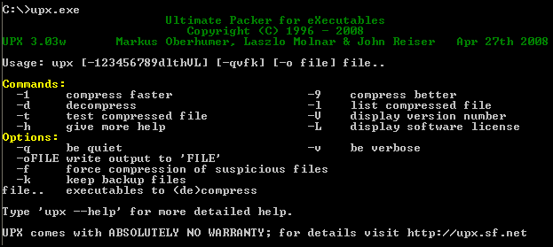 upx.exe 프로그램의 사용할 수 있는 옵션을 확인했다.