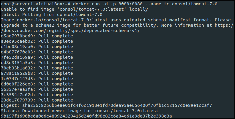 run 명령어를 통해 consol/tomcat-7.0을 불러왔다.