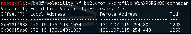 Pid 1260번은 검출되지 않아서 explorer일 것 같다. 131.107.115.254 IP주소가 의심스럽다.