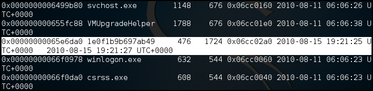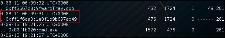 explorer.exe .1e0f1b9b697ab49 2010-08-15 19:21:25 UTC+0000 2010-08-15 19:21:27 UTC+0000 ..cmd.exe 2010-08-15 19:22:11 UTC+0000 2010-08-15 19:22:11 UTC+0000