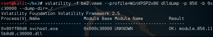 PID 856, Address 0xc30000 덤프 파일이 만들어진 것을 알 수 있다.