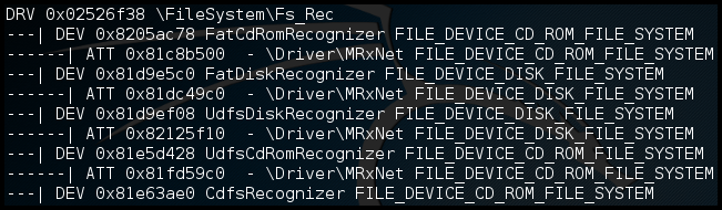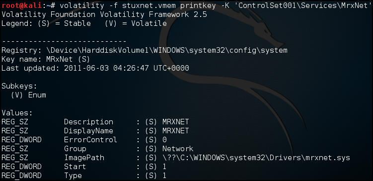 print key를 통해 레지스트리 정보를 보면 mrxney.sys 위치를 알 수 있다.