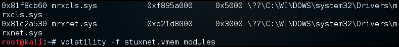 mrxnet.sys 모듈을 검색하면 stuxnet 관련된 모듈인 것을 알 수 있다.