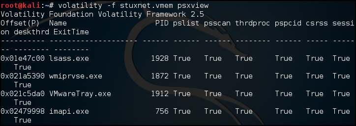 psxview 다른 프로세스 플러그인을 확인했다.