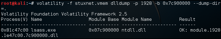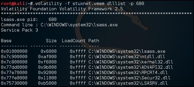 dlllist를 정상적인 프로세스를 확인했다.
