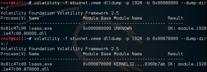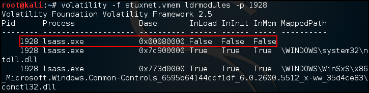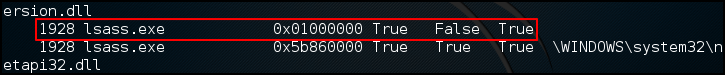 원본 lsass.exe 파일이 올라오는 메모리 경로를 확인할 수 없어 수상한 것 같다.