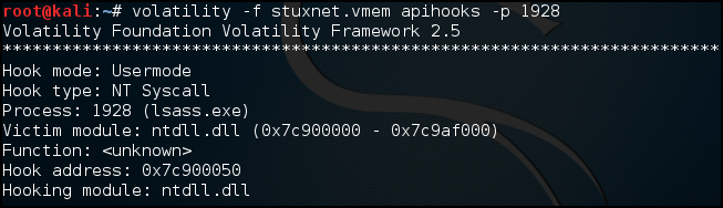 apihooks를 해보면 NT Syscall Hooktype이고 네이티브 후킹을 하고 있고 Vicitim과 Hooking ntdll.dll, ntdll.dll인 것으로 보아 자기 자신을 후킹 하는 것을 보아 변조된 것을 알 수 있다.
