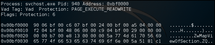 ldrmodules를 보면 VirtualAlloc과 WriteProcessMemory로 주입된 듯 보이는 메모리를 확인할 수 있다.