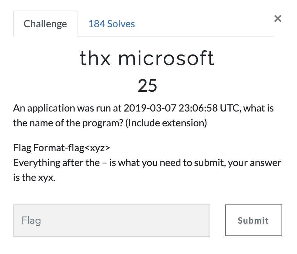 2019-03-07 23:06:58 UTC에서 응용 프로그램이 실행되었는데, 프로그램의 이름은 무엇인가?