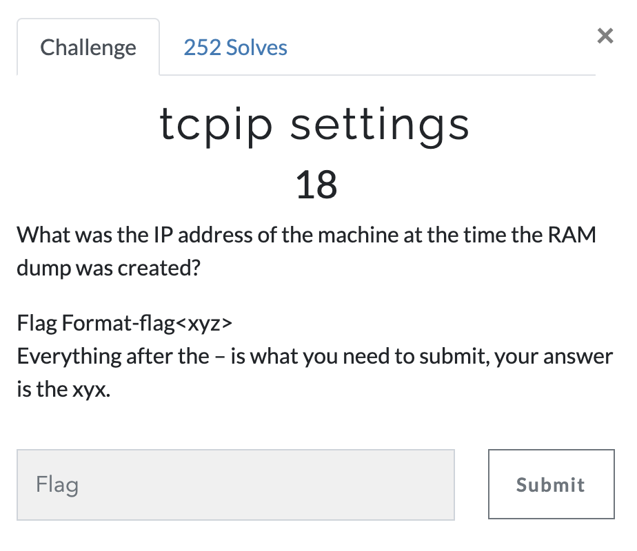 RAM 덤프가 생성되었을 때 시스템의 IP 주소는?