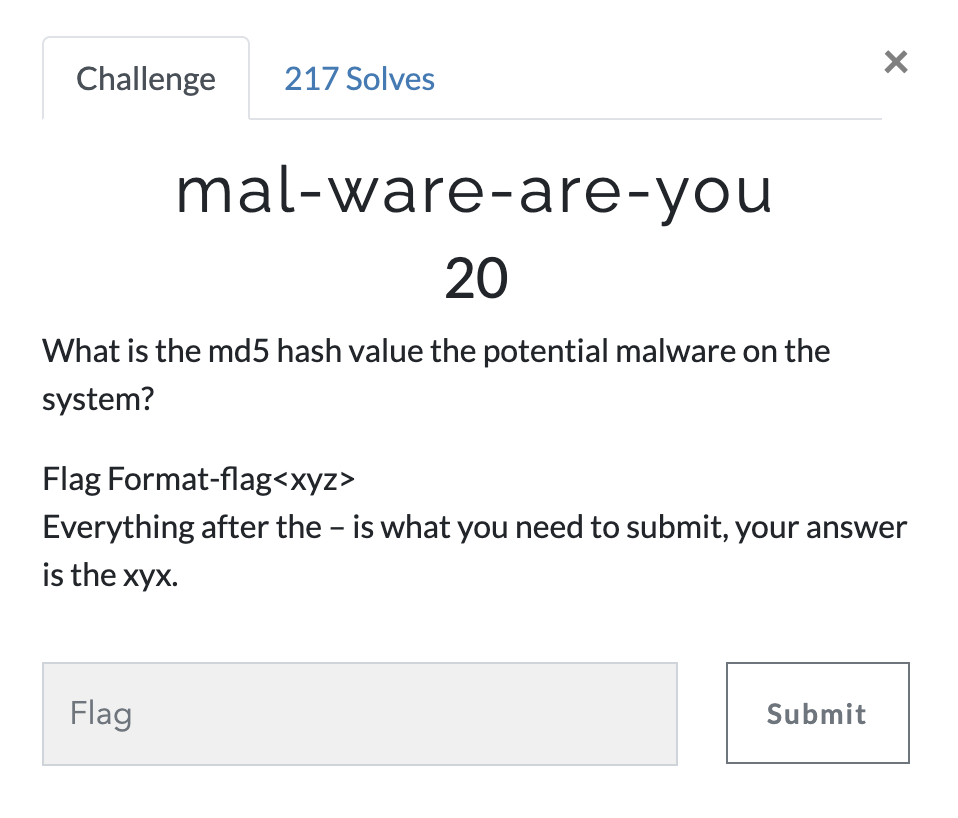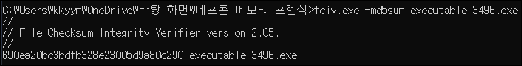 시스템에서 잠재적인 멀웨어의 md5 해시값은 무엇인가?