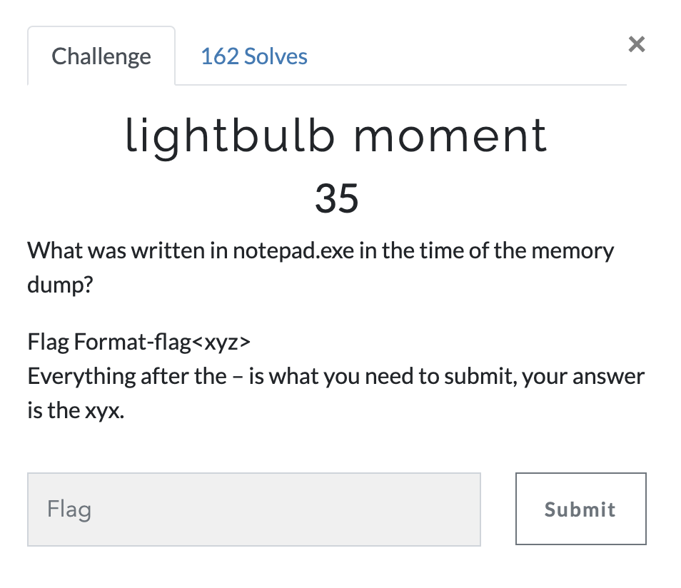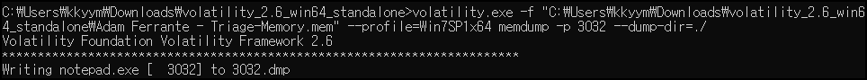 메모리 덤프 당시에 notepad.exe로 작성된것은 무엇입니까?